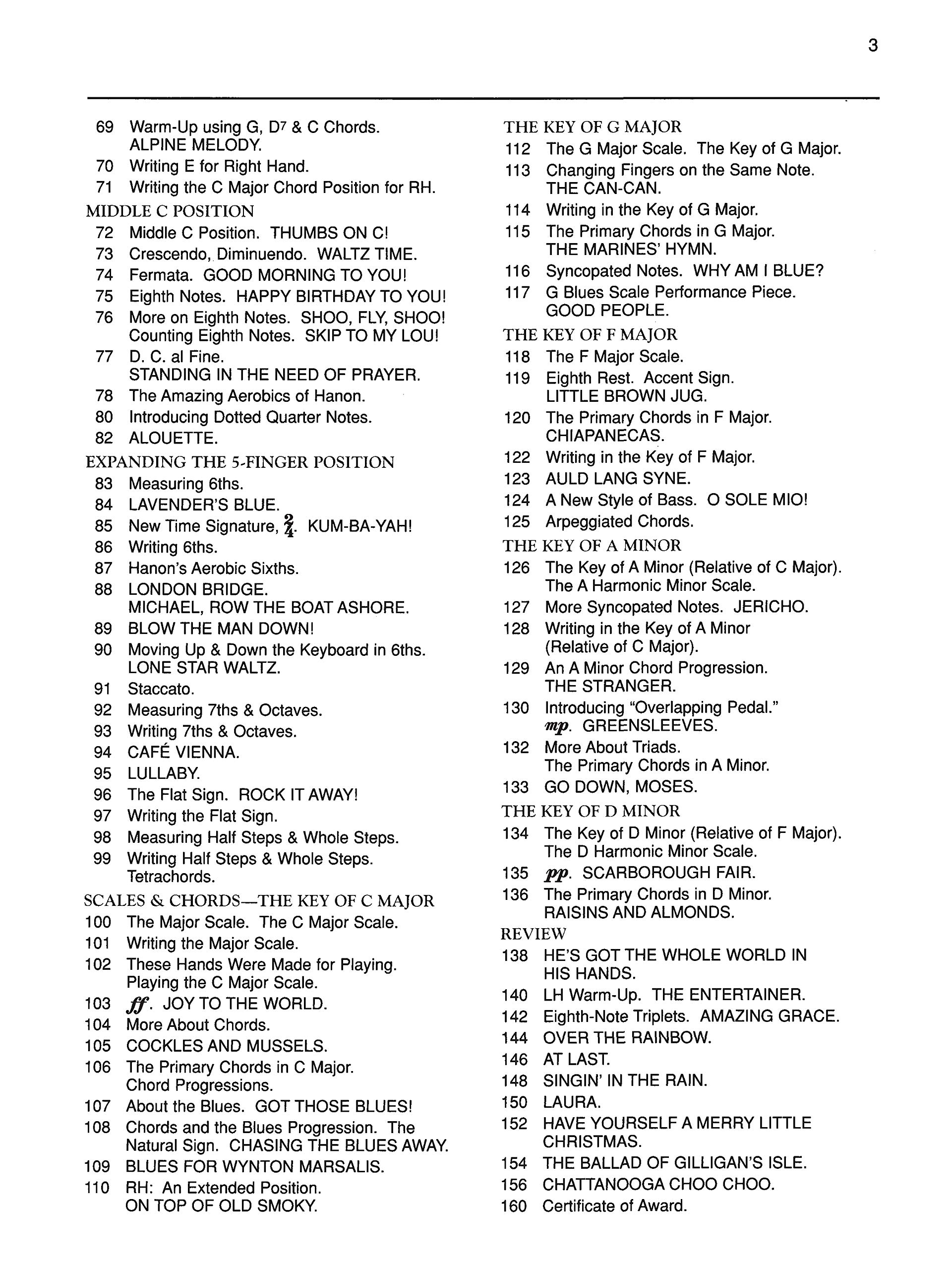 Alfred’s Basic Adult All-in-One Course is a greatly expanded version of Alfred’s Basic Adult Piano Course that includes lesson, theory, and technique in a convenient, “all-in-one” format. This comprehensive course adds such features as isometric hand exercises, finger strengthening drills, and written assignments that reinforce each lesson’s concepts. The accompanying DVD includes introductions to the lesson material in the book and performances of most of the pieces by well-known teacher, Gayle Kowalchyk. Book titles include: Alouette * Alpine Melody * Amazing Grace * Au Claire de la Lune * Aunt Rhody * Auld Lang Syne * Aura Lee * The Bandleader * Beautiful Brown Eyes * Blow the Man Down! * Blues for Wynton Marsalis * Brother John * Caf? Vienna * The Can-Can * Chasing the Blues Away * Chiapanecas * Cockles and Mussels * The Cuckoo * Day is Done * Dueling Harmonics * The Entertainer * A Friend Like You * Go Down, Moses * Good King Wenceslas * Good Morning to You! * Good People * Got Those Blues * Greensleeves * Happy Birthday to You! * Harmonica Rock * Harp Song * Here’s a Happy Song! * He’s Got the Whole World in His Hands * I’m Gonna Lay My Burden Down * Jericho * Jingle Bells * Joy to the World! * Kum-ba-yah! * Largo (Dvorak) * Lavender’s Blue * Lightly Row * Little Brown Jug * Liza Jane * London Bridge * Lone Star Waltz * Love Somebody * Lullaby * The Marine’s Hymn * Mary Ann * Merrily We Roll Along * Mexican Hat Dance * Michael, Row the Boat Ashore * Money Can’t Buy Everything * My Fifth * Ode to Joy * On Top of Old Smoky * O Sole Mio * Raisins and Almonds * Rock Along * Rockets * Rockin’ Intervals * Rock It Away! * Scarborough Fair * Shoo, Fly, Shoo! * Skip to My Lou! * Standing in the Need of Prayer * The Stranger * Tisket, a Tasket * Waltzing Chords * Waltz Time * What Can I Share * When the Saints Go Marching In * Why Am I Blue?