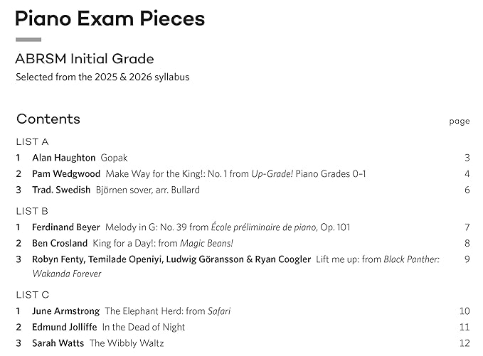 ABRSM Initial Grade Piano Exam Pieces 2025 & 2026
